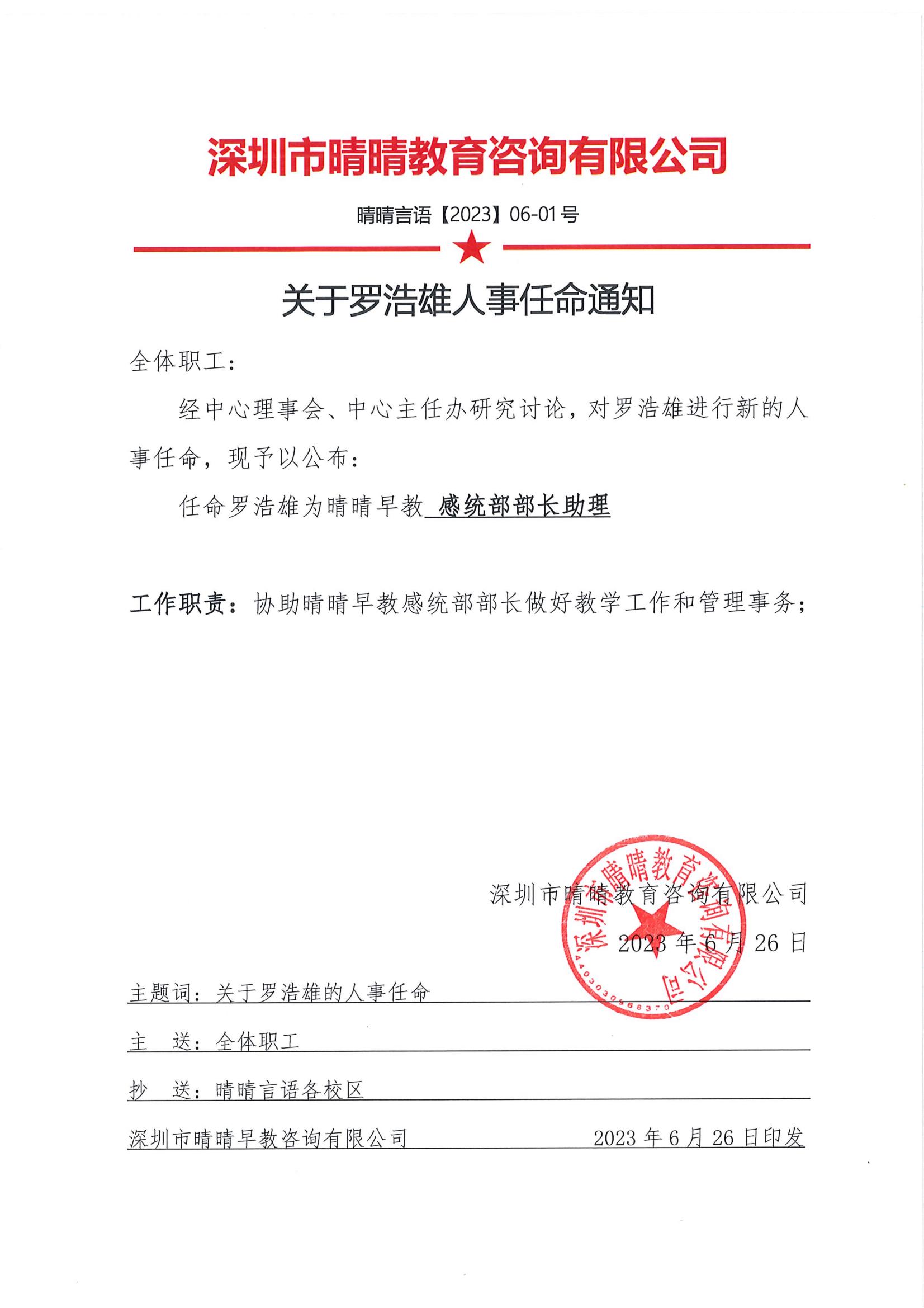 罗浩雄人事任命书