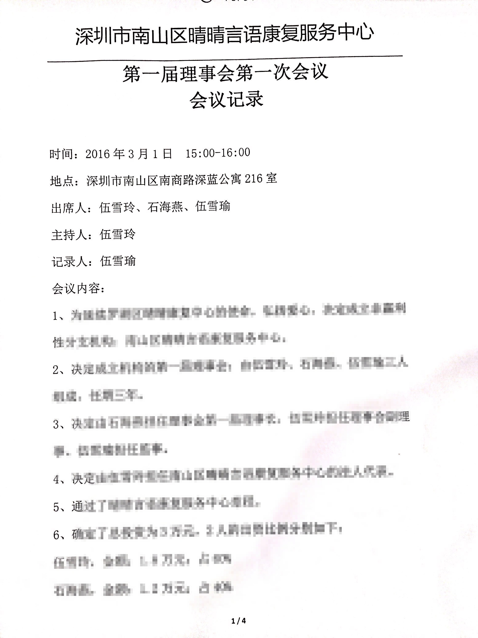 南山区晴晴言语第一届第一次理事会会议纪要