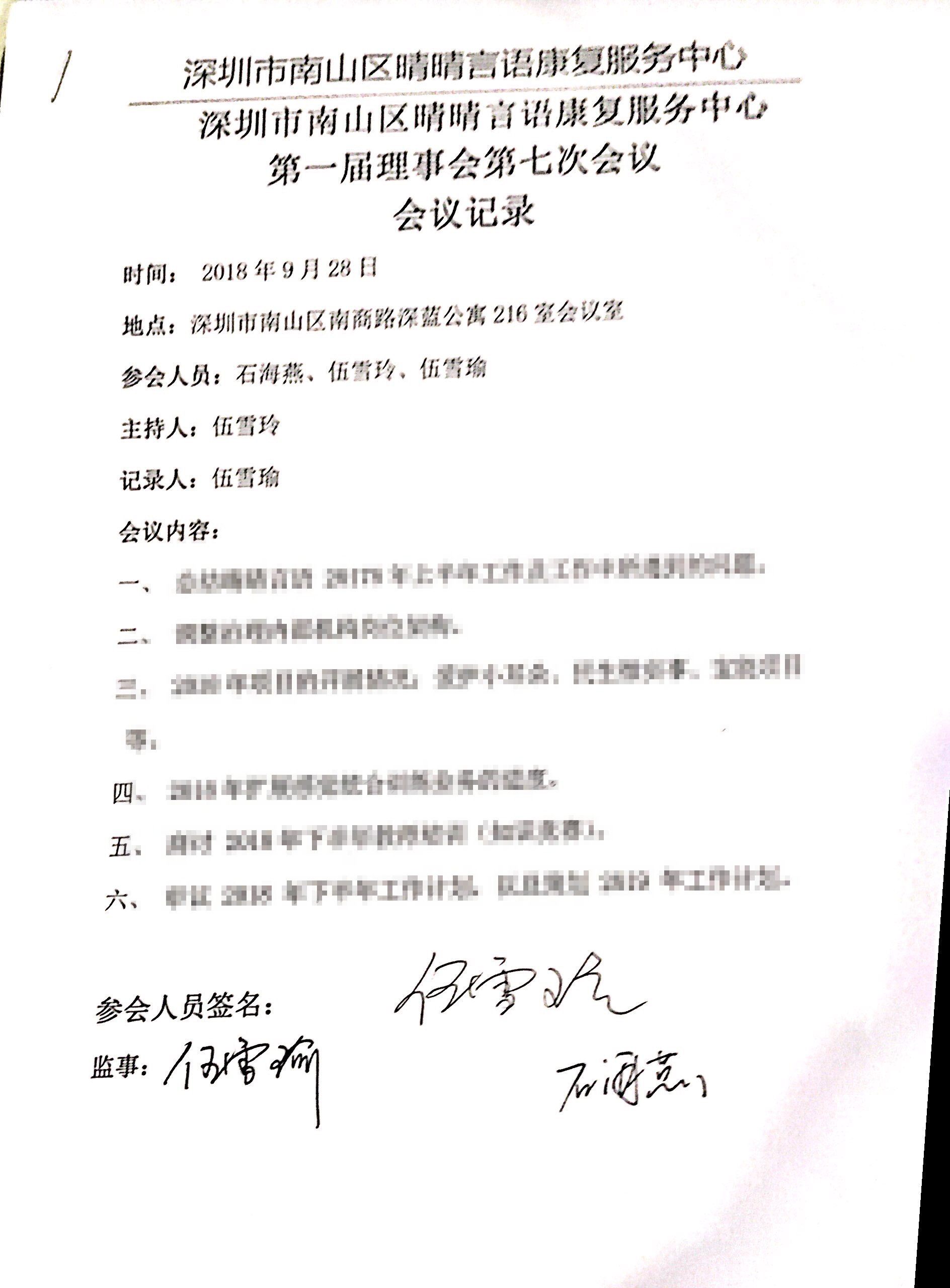 南山区晴晴言语第一届第六次理事会会议纪要