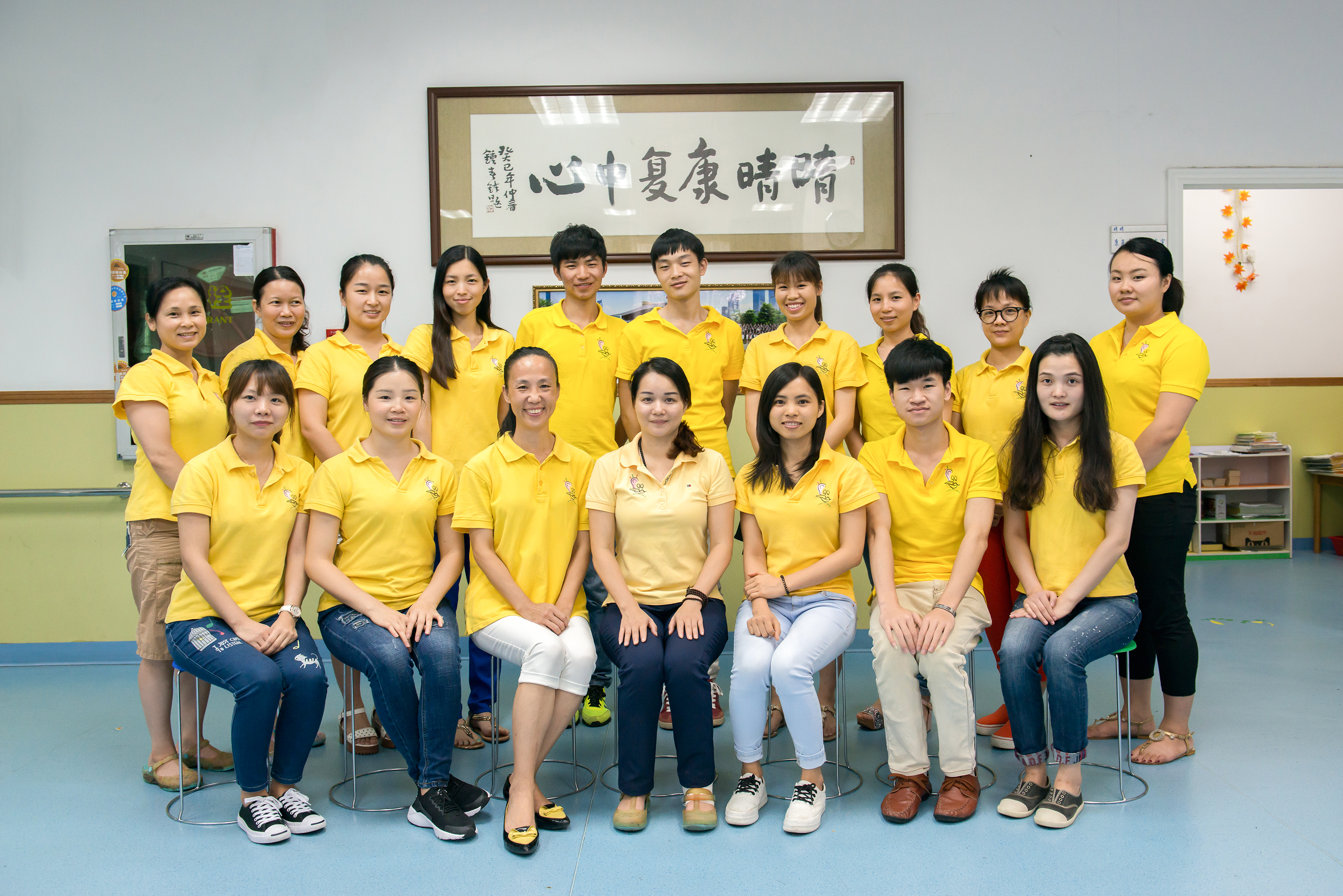 中心配套有评估室、大教室、个训室、言语矫治室、感统训练室、休息室、活动室、盥洗室、多媒体会议厅等等,设备齐全,环境和谐温馨,是孩子们理想的学习、生活场所。中心现有专职教职员工30余人,一线康复师均毕业于特殊教育、学前教育、康复师等专业,具有非常丰富的教学实践经验和独特的康复训练技能。并定期组织教师参加各类授课实践经验和理论学习活动,促使教学水平不断提高。