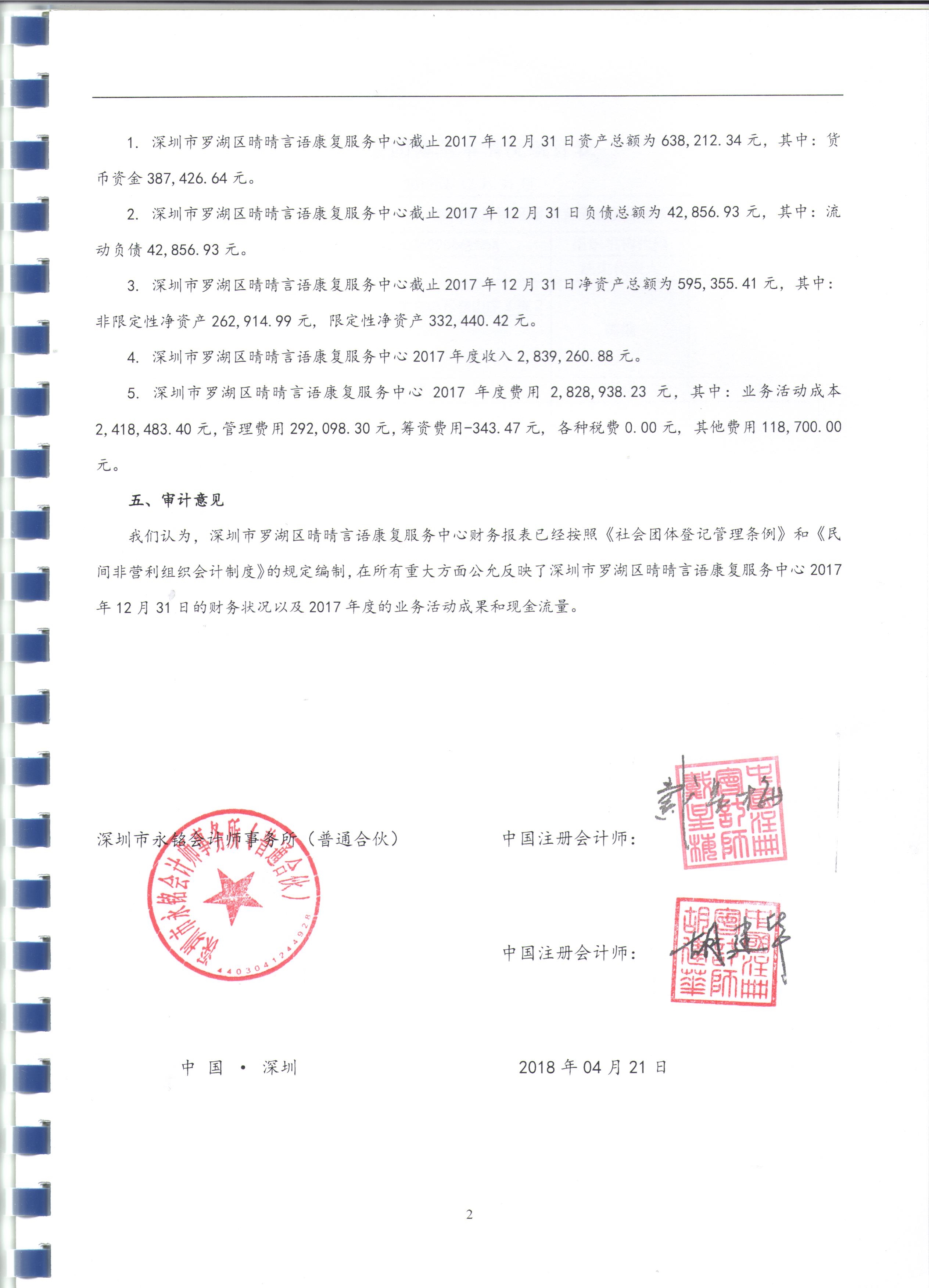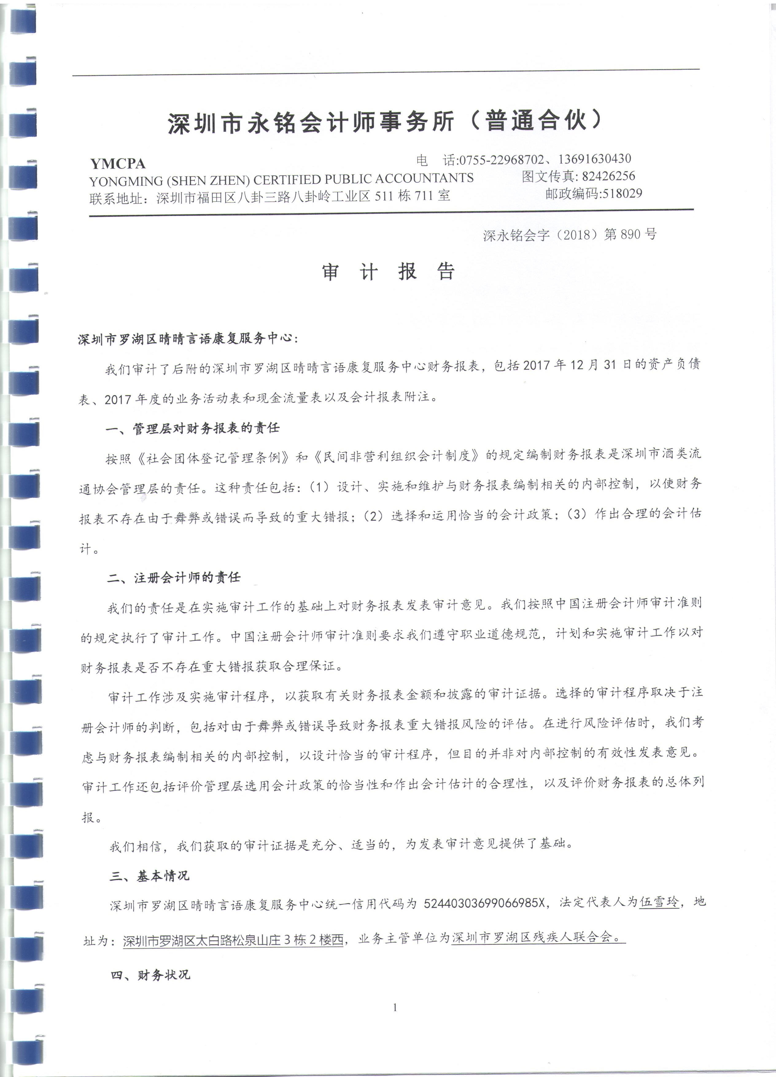 深圳市南山区晴晴言语康复服务中心2016年审计报告