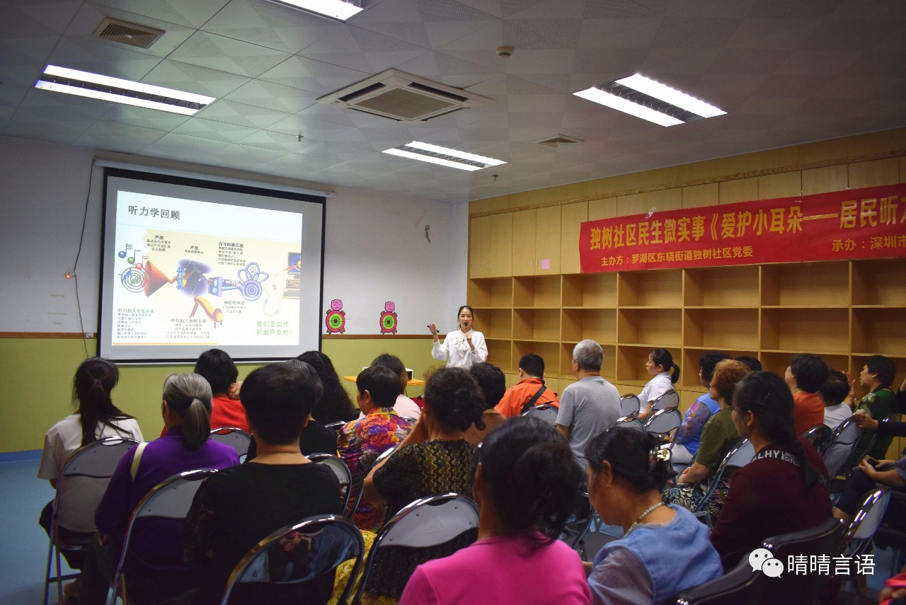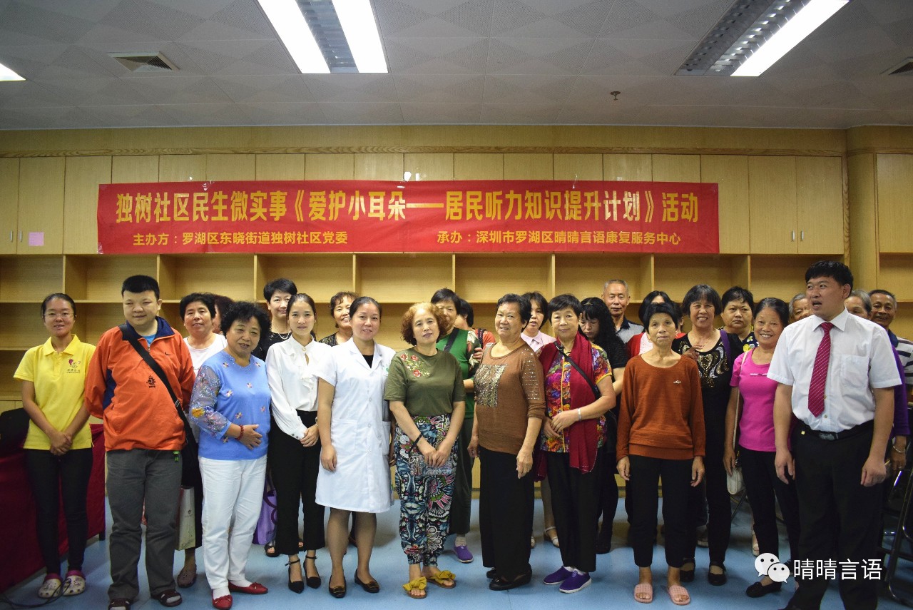 2018年10月23日,由独树社区党委的支持下,深圳市罗湖区晴晴言语康复服务中心举行了独树民生微实事“爱护小耳朵”—社区居民听力知识提升计划活动,活动受到了广大社区居民的欢迎,当天到场参与讲座人数达40余人。