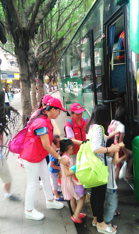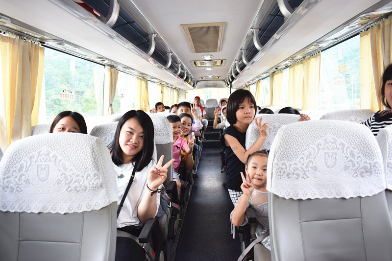 早上8:00小朋友和爸爸(妈妈)陆陆续续的来到中心签到、集合。8:30准时乘坐大巴车出发,一路上小朋友们叽叽喳喳的说个不停,爸爸妈妈们耐心的给孩子们讲解今天的活动。