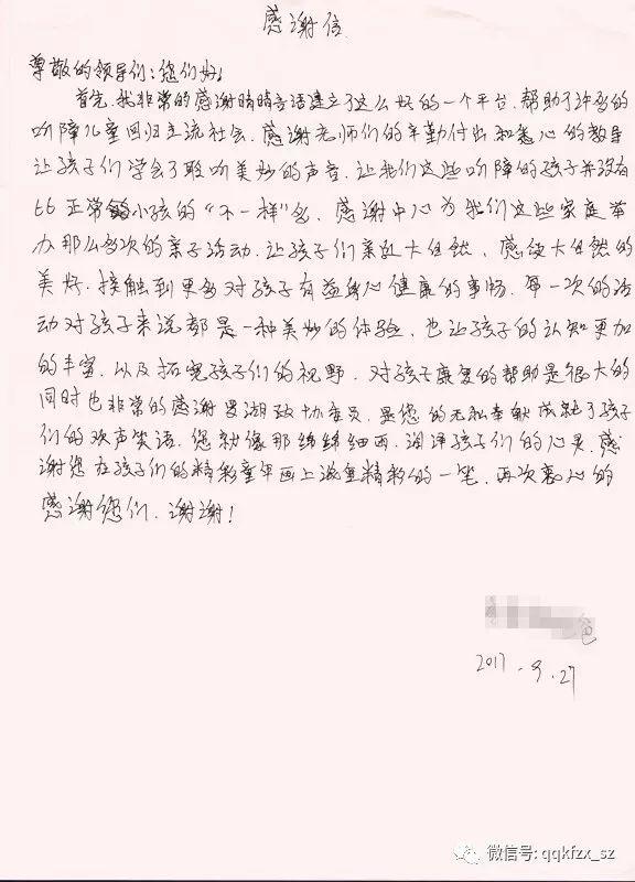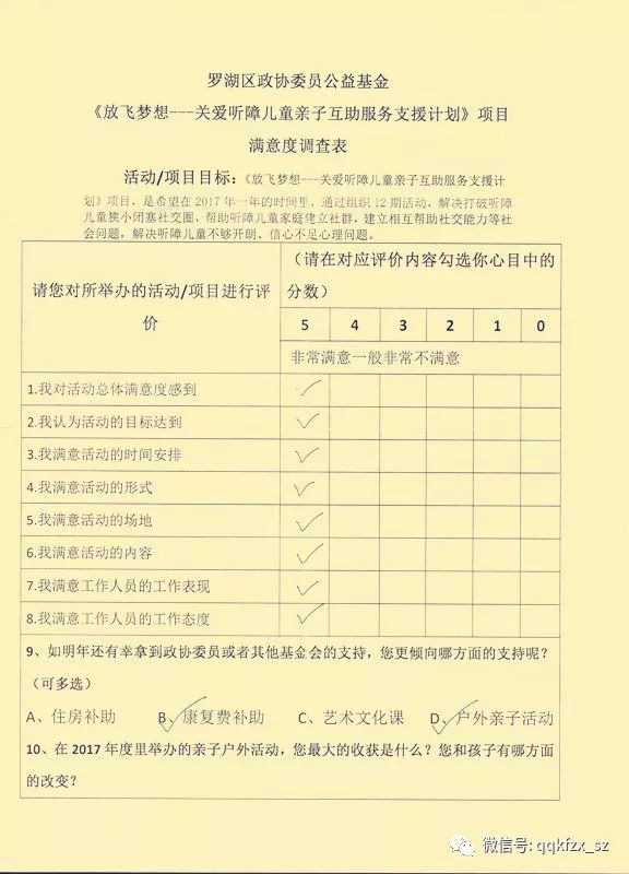 附上家长亲笔撰写的感谢信、整体活动满意度调查表。