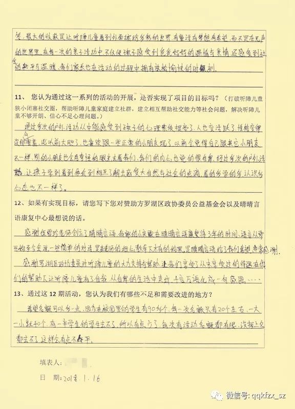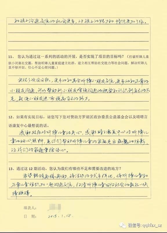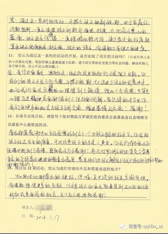 截至2018年1月13日,晴晴言语严格按照“资助项目协议书”、“项目申报书”的要求完成了各项活动,并召开了家长总结会议。