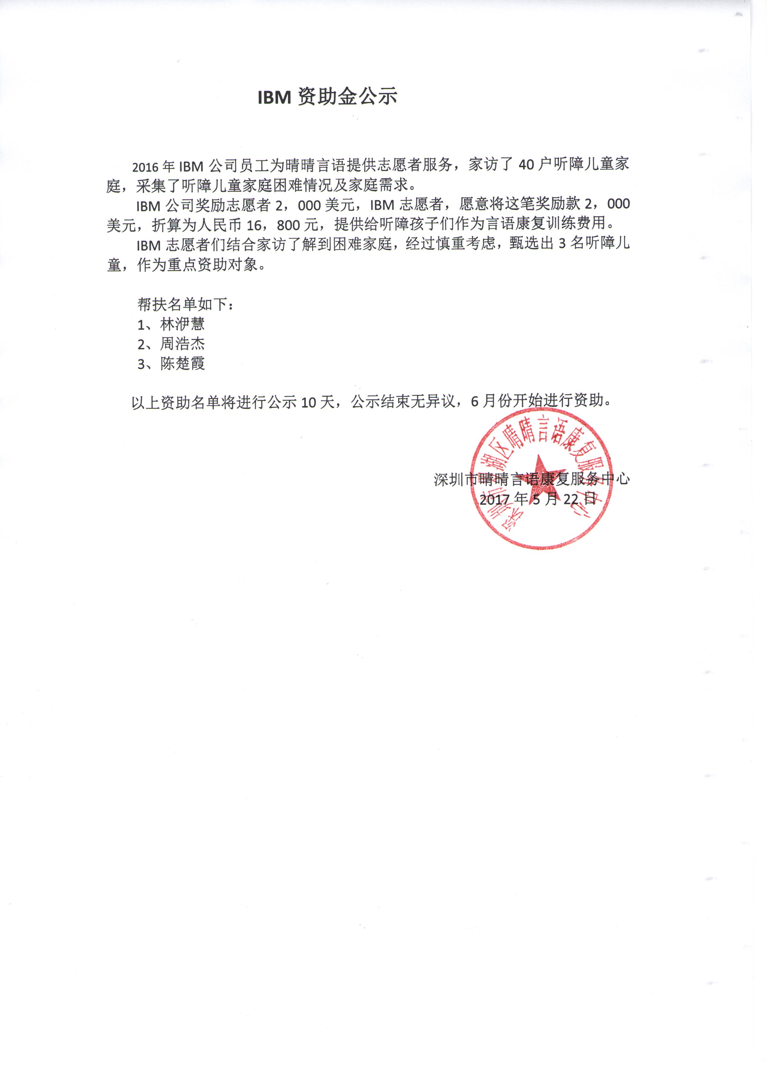 IBM资助金公示