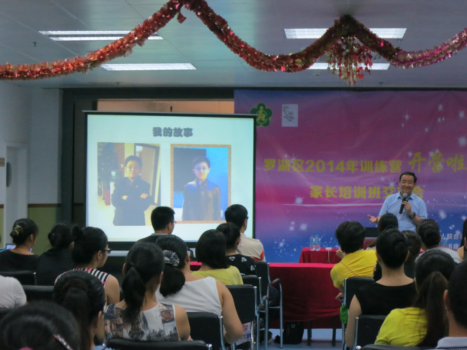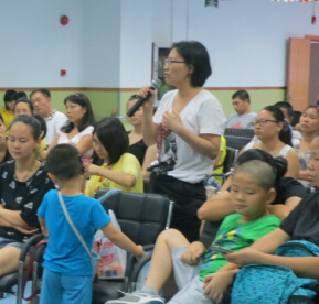 2014年8月,罗湖区残联经过前期严密的调研审批后通过了2014年训练营项目,并于各个康复机构紧锣密鼓的进行康复训练。为了让训练营更加完善丰富,今年区残联还为残障家庭增设一项培训:残疾人家长培训班。8月16日下午,由区残联主办、我中心承办的2014年罗湖区残疾人家长培训班在松泉山庄残疾人综合服务中心大厅举行。场面可谓热情如火。中心主任伍老师经过调查,认为残疾人家庭除了面临经济困难外还面临一个家庭康复上的心理压力问题,家庭个成员间的和谐能力,于是特邀请了来自北京的鲁炳全教授,给家长们授课及讲座。