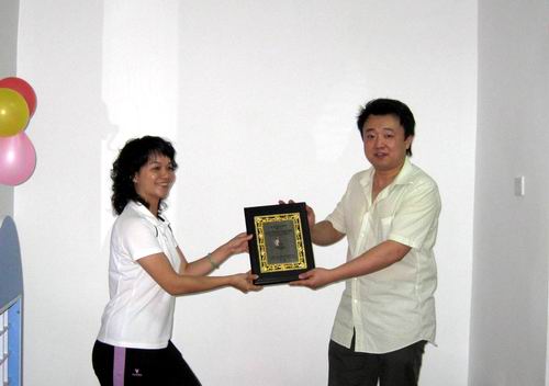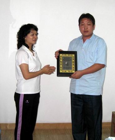 感谢石海霞女士为中心捐赠一批书籍及一笔康复基金 ,家长代领中心回赠奖牌