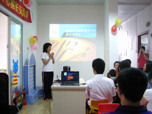 2010年5月3 日上午9点,在这一年一度的劳动节小长假期间,由深圳市罗湖区晴晴言语康复服务中心和众悦听力连锁机构精心组织筹划的一场家长学习、交流会,在本中心会议厅顺利进行,参加本次交流会的有26名听障儿童家长、听力学专家胡志刚、凯勤实业公司总经理夫妇、众悦听力工作人员及中心全体老师。