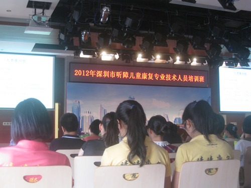 2012年9月16日至17日,中心的老师们参加了此次深圳市听障儿童康复专业技术人员培训班,这一次的培训班很荣幸的请到了中国聋儿康复研究中心副主任、医学硕士、主任医师、教授、博士生导师孙喜斌教授;中国聋儿康复研究中心曲春燕博士;诺尔康资深听力学专家银力医生;早期干预中心的言语治疗师陈红燕老师等;出席了本次培训班,给我们带来了许多相关康复内容的精髓。