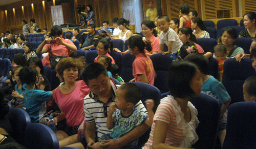 孩子和家长在观看表演