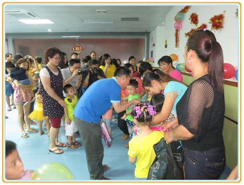 为庆祝一年一度的“六一”国际儿童节,让小朋友们度过一个快乐而有意义的节日,今天上午本中心协同澳大利亚人工耳蜗南方客服中心为孩子和家长们精心准备了一场精彩纷呈的亲子游园活动。活动开始,深圳市罗湖区残联理事长许斌在随行人员的陪同下前来中心亲切看望了活动中的小朋友和家长,并为孩子们送上暖心的祝福及慰问品。期间,李萌小朋友的妈妈,陈一涵小朋友的妈妈代表在中心康复的孩子们及其家长们向许斌理事长献上了孩子们亲手剪贴的手工画。活动在其乐融融中进行。孩子们的欢声笑语、稚趣的童真洋溢在活动场地上每一处角落,家长们也彼此陶醉。这是一次令人快乐难忘的“六一”儿童节。