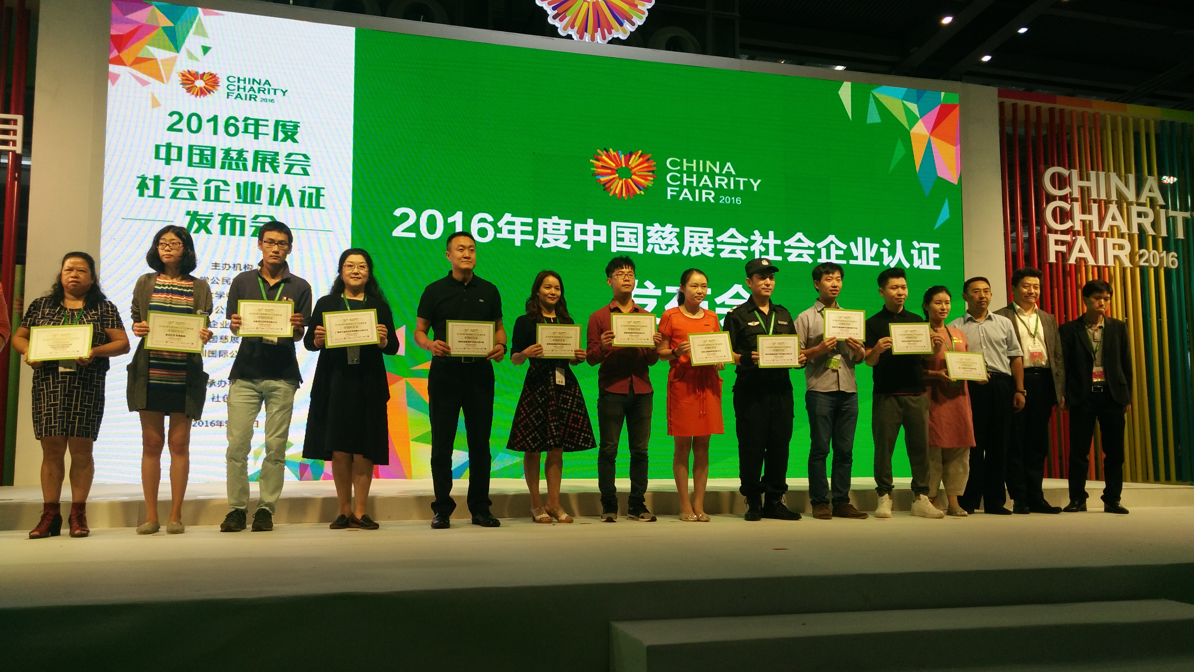 2016年度中国慈善会社会企业认证自7月启动以来,共收集建立了全国300个社会企业名录数据库。经过公开招募社会企业有154家意向社会企业申报参加2016年中国社会企业认证,较去年增长233%。经资格审查,有108家符合资格进入中审;经过电话、邮件及现场调研,有45家机构进入至专家评审环节。最终有1家金牌社区、15家中国好社企获得2016年中国慈展会社会企业认证。