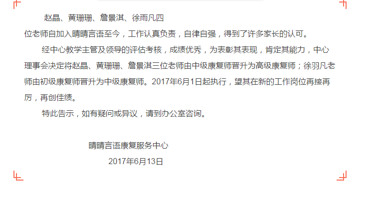 康复师晋升告示