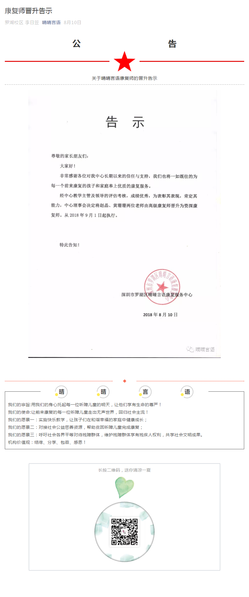 康复师晋升告示(2018年8月)