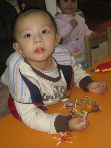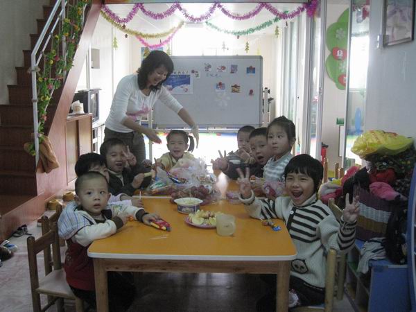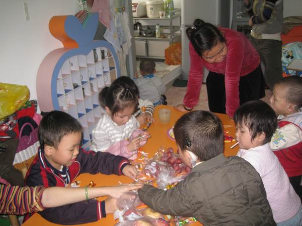 今天是圣诞节,中心里充满了浓浓的节日气氛~爱心阿姨像圣诞老人似的,背着大大的一袋礼物来看望孩子们!~