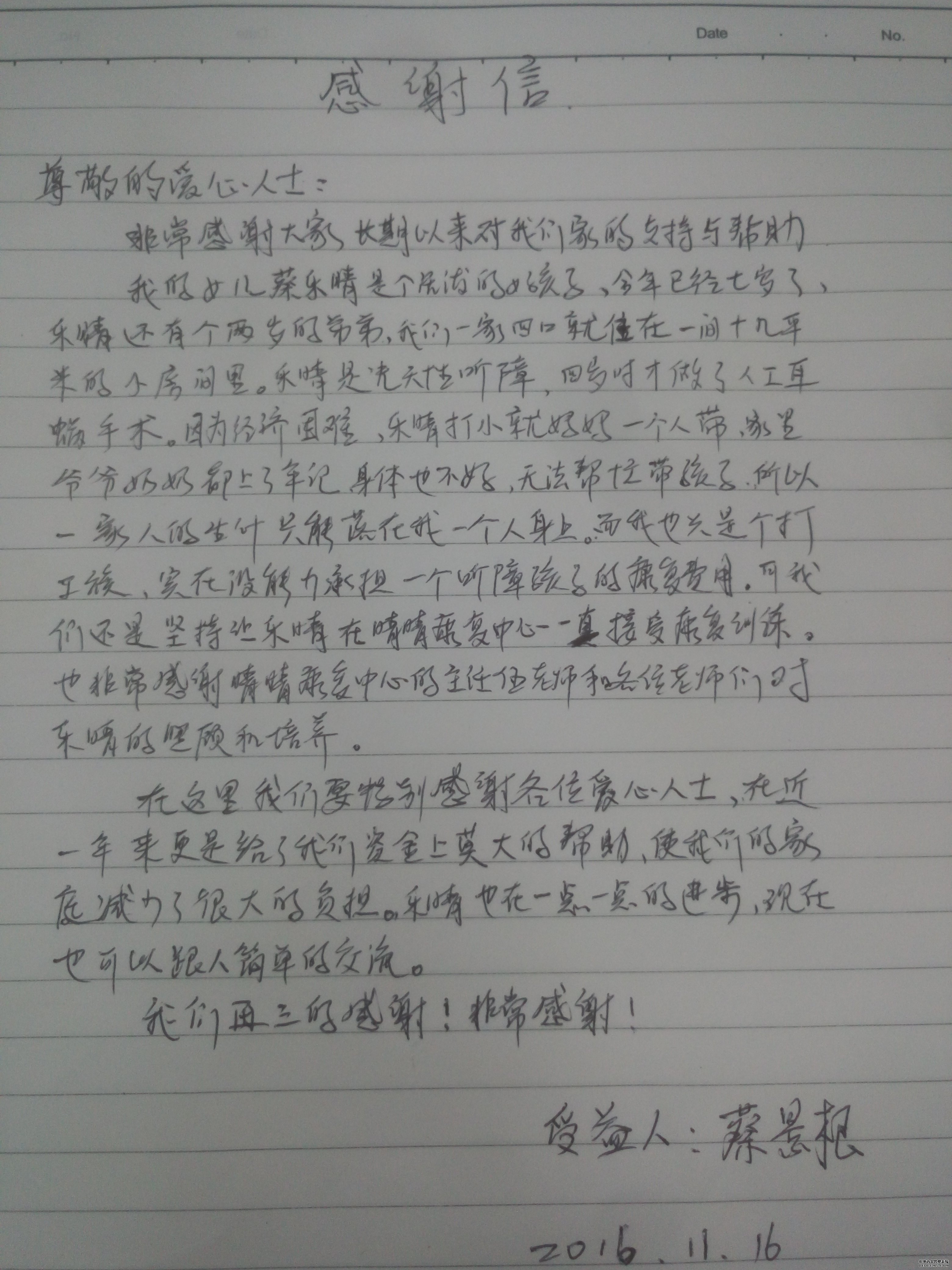 以下是受资助的8名孩子近照和部分家长写的感谢信。看着他们一个个脸上露出开心的笑脸,作为康复中心的老师,我们倍感欣慰,真心祝愿所有听障孩子早日康复,早日说出动听的话语,早日融入到普校。