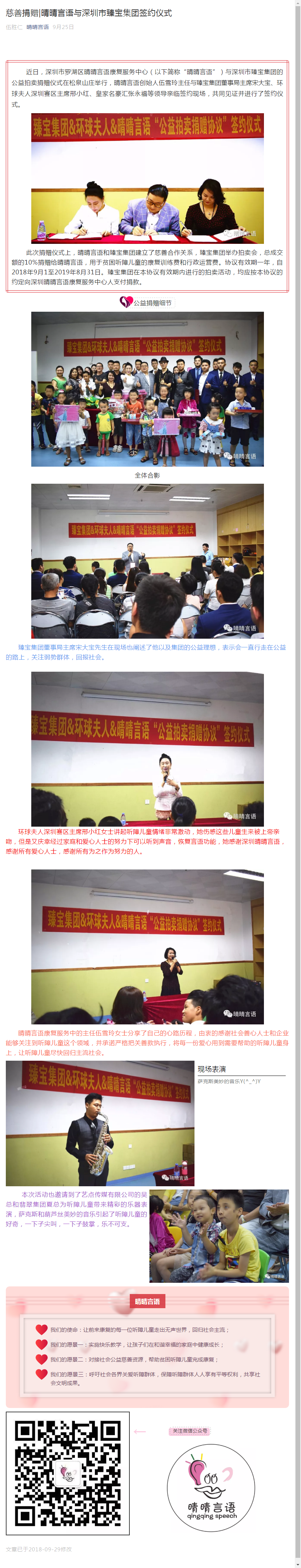 慈善捐赠|晴晴言语与深圳市臻宝集团签约仪式