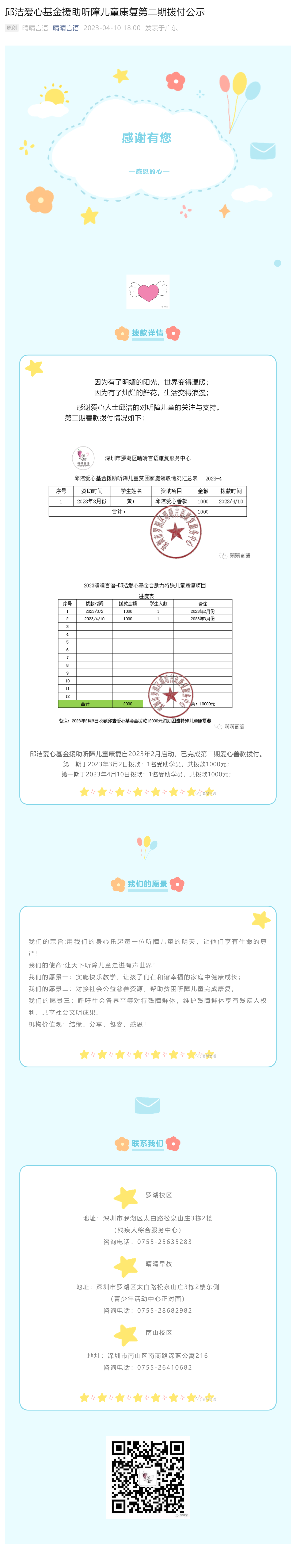 邱洁爱心基金援助听障儿童康复第二期拨付公示
