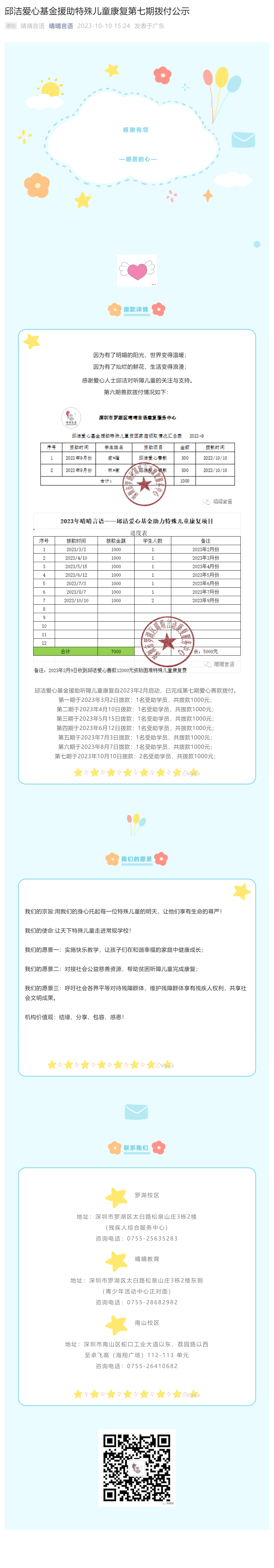 邱洁爱心基金援助特殊儿童康复第七期拨付公示