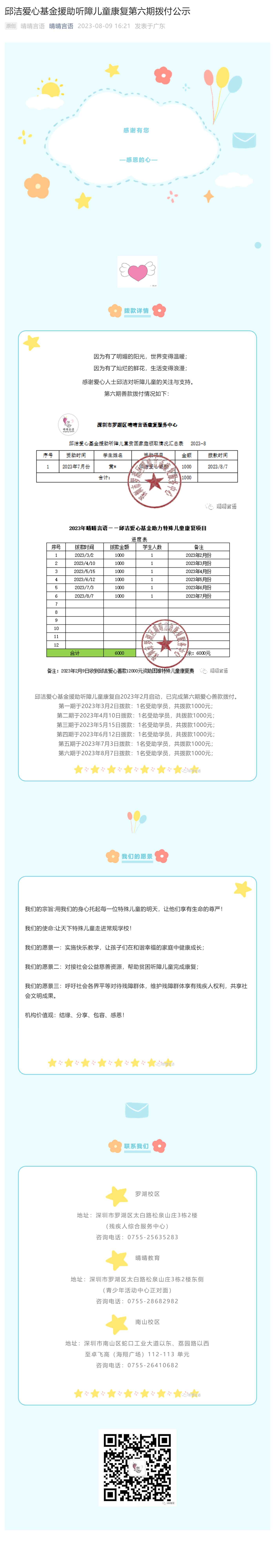 邱洁爱心基金援助听障儿童康复第六期拨付公示